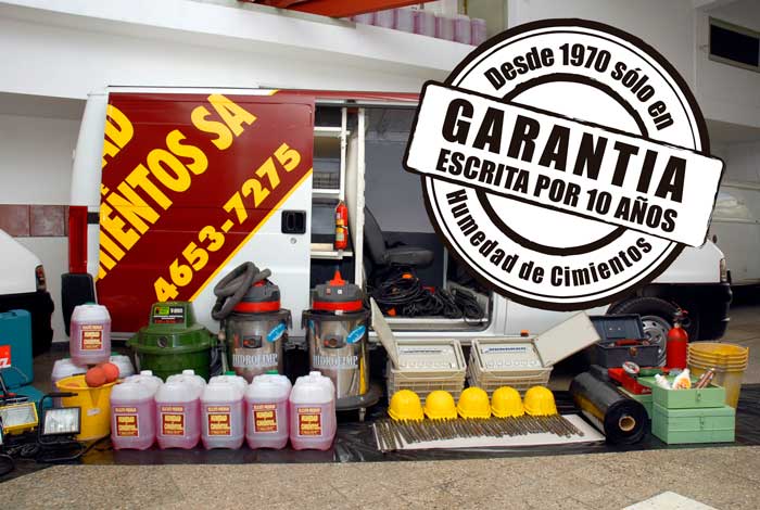 Nuestra mejor Referencia es contar desde febrero de 1970 con una empresa dedicada exclusivamente a humedad de cimientos y con una estructura adecuada, algo necesario, pero poco común en nuestro medio. Nuestros furgones completamente equipados, vehículos de apoyo, maquinas Hilti TE76 ATC, Ryobi ED 381 y 382NP, MAKITA HR4000C y HR5001C y treinta personas a su servicio, como así también elementos de seguridad para proteger su casa e instalaciones, como a nuestro personal y equipos. Para su tranquilidad, todo nuestro personal se encuentra asegurado contra accidentes de trabajo en la empresa MAPFRE ART.